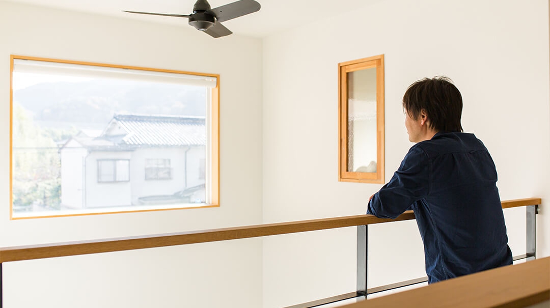 2階からは吹き抜けを通して紅葉などが窓の景色として楽しめるようになっています。