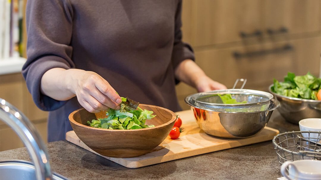 ダークトーンで落ち着いた印象のあるキッチンで毎日料理を楽しまれているそうです。