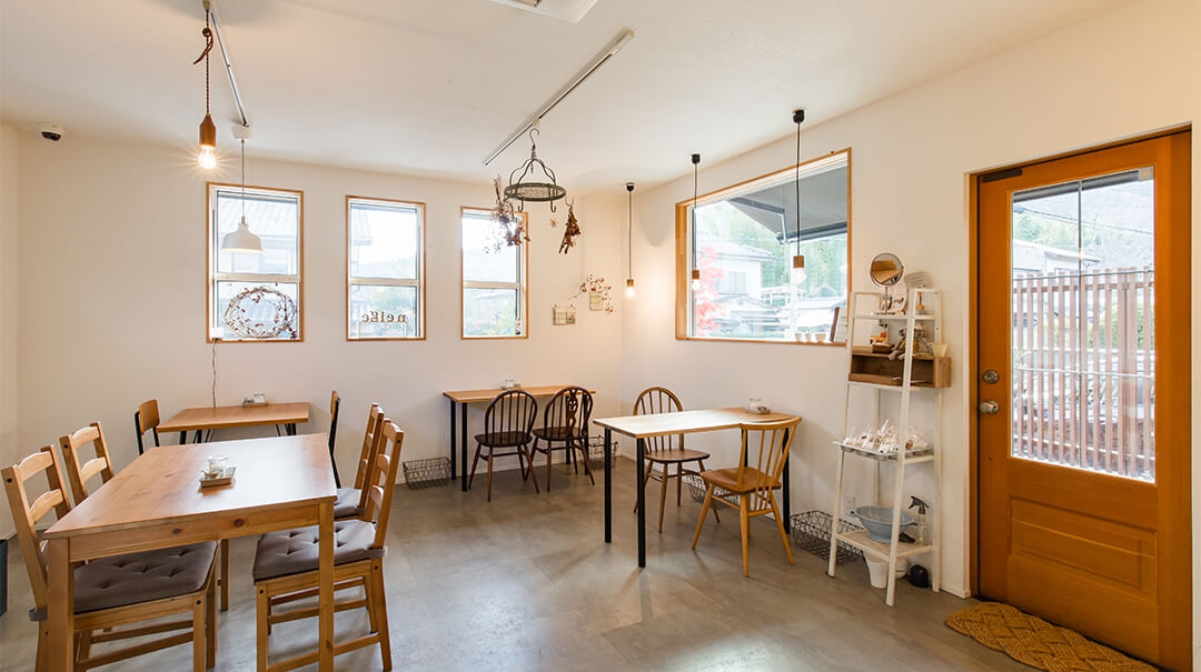 カフェを営む奥様は、店舗空間とキッチン周りのプランにたっぷりと時間をかけ素敵な空間になりました。