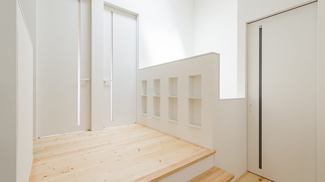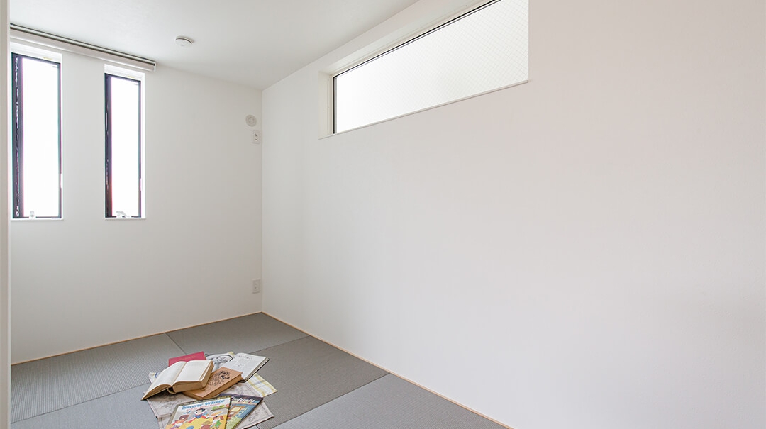 2Fへ上がると子供の絵本スペースを設けており、家のどこにいても家族が子どもとつながるようにしたのも設計ポイントの一つです。
